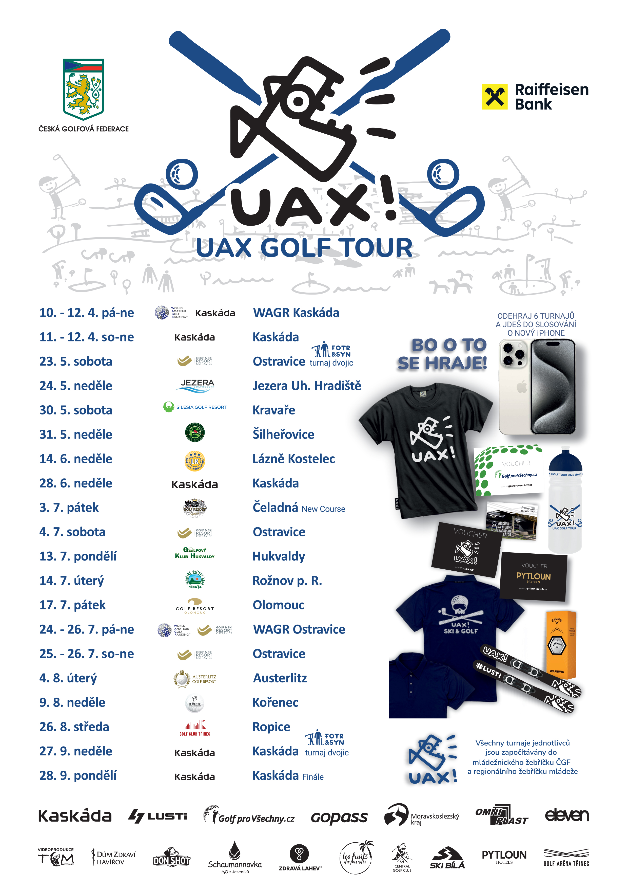 Vítejte na UAX GOLF TOUR regionální Moravské túře mládeže. Tato prestižní série 22 turnajů po celé Moravě není jen o golfu, ale o vytváření nezapomenutelných zážitků pro celou rodinu. Nechte se unést do světa, kde se vášně prolínají a kde se budují celoživotní vzpomínky. Připojte se k nám a staňte se součástí něčeho opravdu výjimečného!